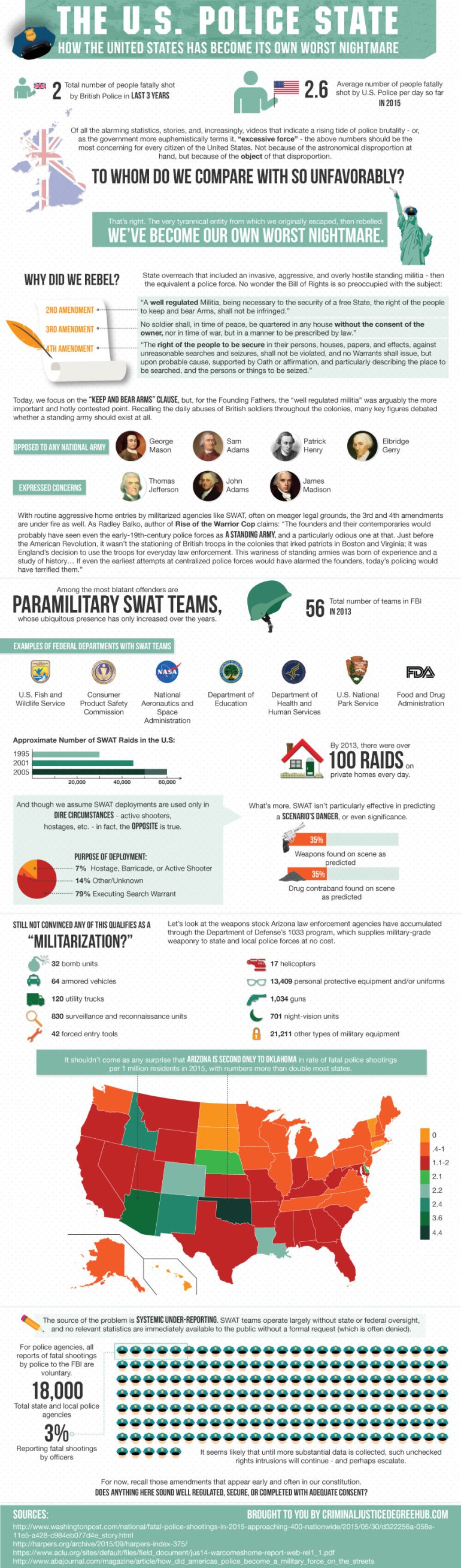 The founding fathers would have seen the million plus police in America as a standing army-this never occurred to me, but I must admit, it sounds spot on.