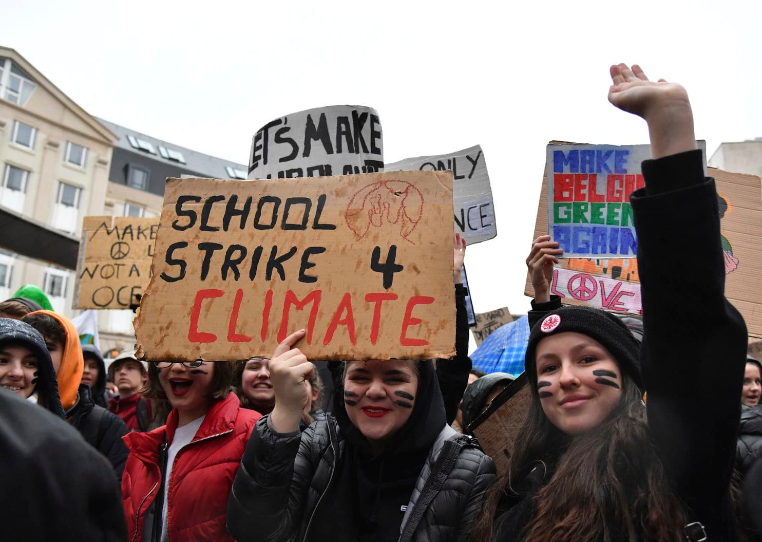 Students and others hold up placards with climate messages during a demonstration against climate change in Brussels, Thursday, Jan. 17, 2019. Thousands of students as part of the Youth for Climate movement took time off school Thursday to call for stronger action against climate change. (Geert Vanden Wijngaert/Associated Press)