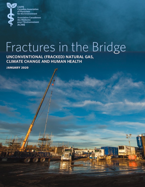 Canadian medical professionals yesterday called for a fracking moratorium based on health and climate grounds. The released paper – Fractures in the Bridge – is a review of fracking evidence, written by doctors from the Canadian Association of Physicians for the Environment (CAPE).