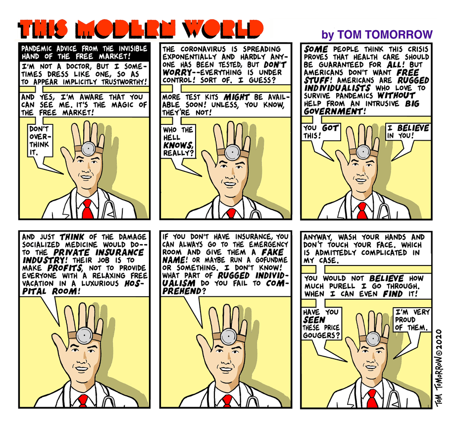 Cartoon of the day Posted on March 18, 2020 by stuartbramhall The first cartoon says it all. occasional links & commentary Special mention View original postShare this: Share on Facebook (Opens in new window) Facebook Share on X (Opens in new window) X Share on LinkedIn (Opens in new window) LinkedIn Like Loading... Related