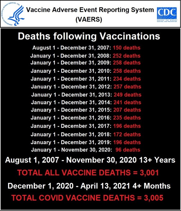1. Pingback: 3,005 Recorded VAERS Deaths Following COVID-19 Experimental “Vaccines” – More than Total Vaccine Deaths for Past 13+ Years | John C. Carleton