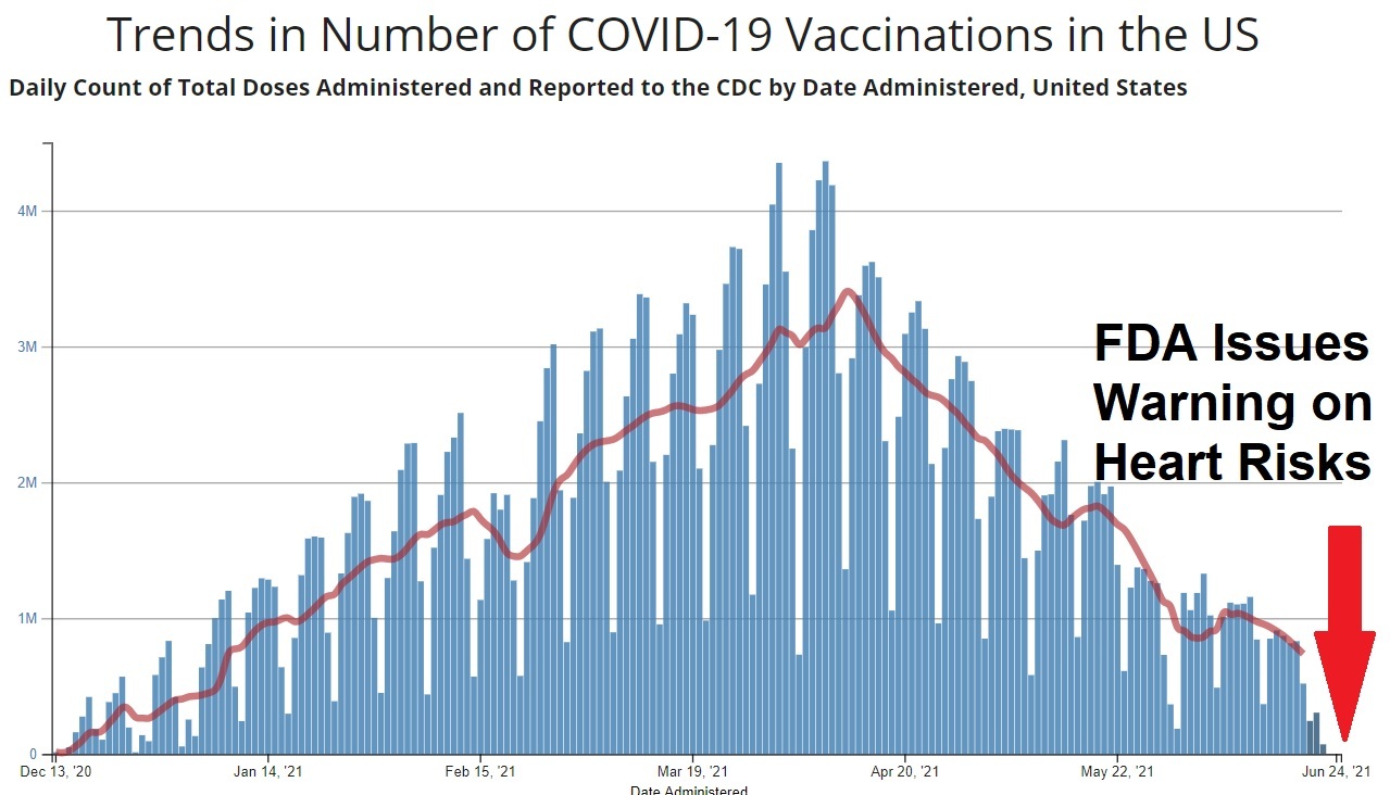 After injecting Americans with over 300 million doses of one of the mRNA COVID-19 bioweapon shots since December 13, 2020, the FDA has finally agreed to force Moderna and Pfizer to put warning labels on their shots over a “likely association” between the injections and heart problems, which they claim is “rare.”