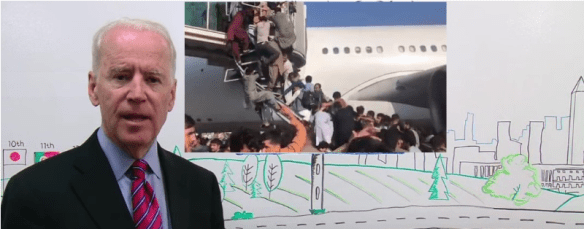 Doddering Joe Biden promised a different outcome in Afghanistan. Scenes of the desperate at Kabul airport trying to flee the country after their US friends abandoned them. Screenshots from YouTube Washington