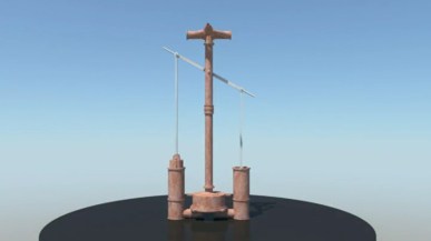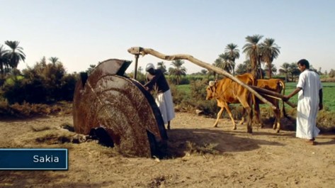 The Sakia is a Helenistic era invention still in use today. With the Sakia, an animal turns a capstan and the horizontal movement is transformed into rotary motion through a right angle gearing system.