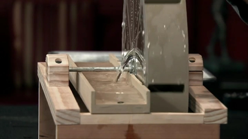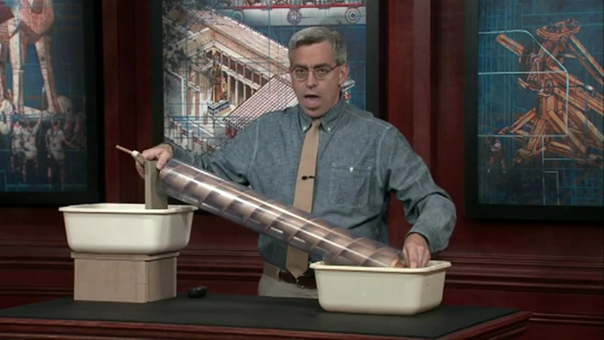 Ressler shows us a screw pump he built himself following these instructions, substituting plastic case for the wooden one.* It was typically used to remove water from ancient mines.