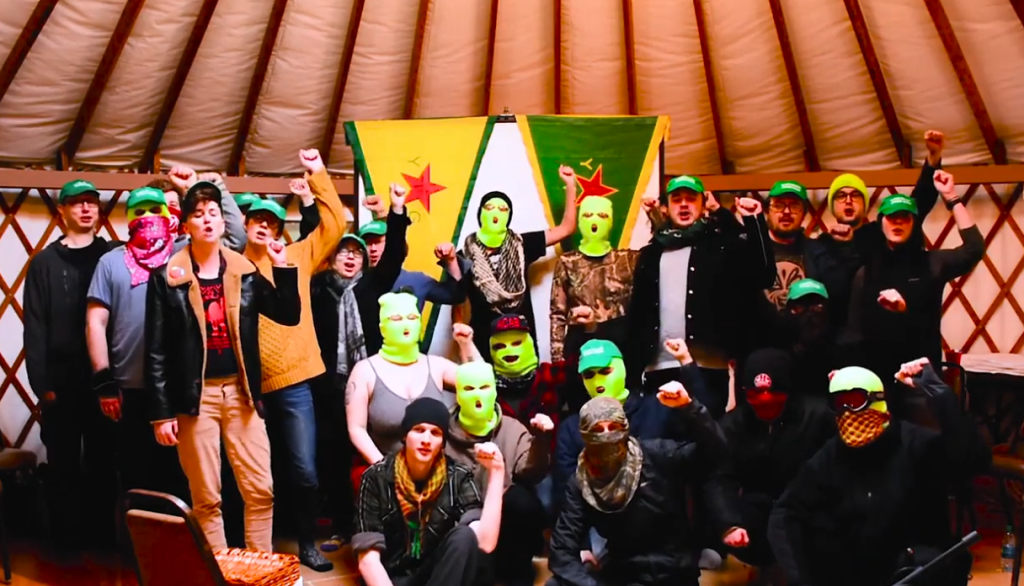 * Featured image: screenshot from a promotional video by a chapter of the Democratic Socialists of America declaring their support for Rojava, a term used for the US-funded Kurdish rebels in Syria fighting against the Syrian government. Many radical liberals, antifa members, and anarchists from the US have gone to join the Kurdish YPG, which is funded by the US government, which fulfills the agenda of America and the Zionist regime to dissolve the Syrian government due to its crucial role in supplying arms to the Islamic Resistance Axis in Lebanon and Gaza.