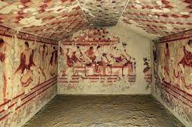 Some necropoleis depicted entire city blocks and detailed carved reliefs and ornately painted frescoes of everyday Etruscan life. life.