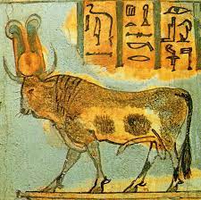 The Apis bull was the main example of an animal god. It was conceived after lightning struck a bull and could be discerned from distinctive markings: a diamond shape on its forehead, a scarab shape under it tongue, wing marking on its back and tail hairs that doubled at the ends.