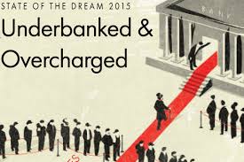 Dream 2015 is a shocking new report describing the systematic impoverishment of people of color. By denying them access to banking services (eg checking accounts to cash their pay checks), Wall Street forces them to rely on fringe financial services, such as check cashing outlets, payday loans and auto title lenders. As Robert Manning writes in Credit Card Nation, many of these predatory outlets are owned by the big banks. Charting interest rates as high as 730% a year, they siphon off $103 billion annually from desperately poor communities.